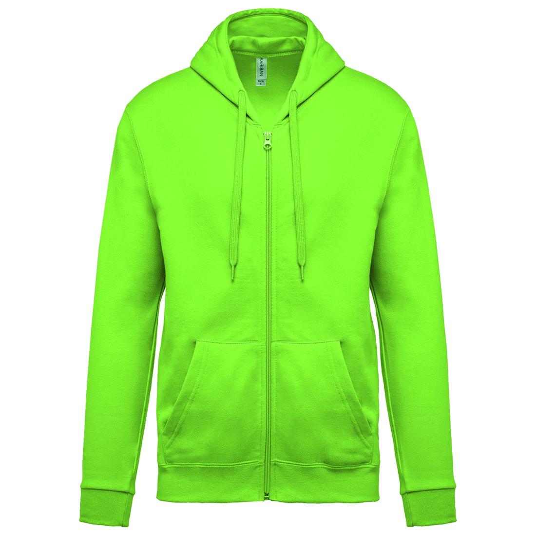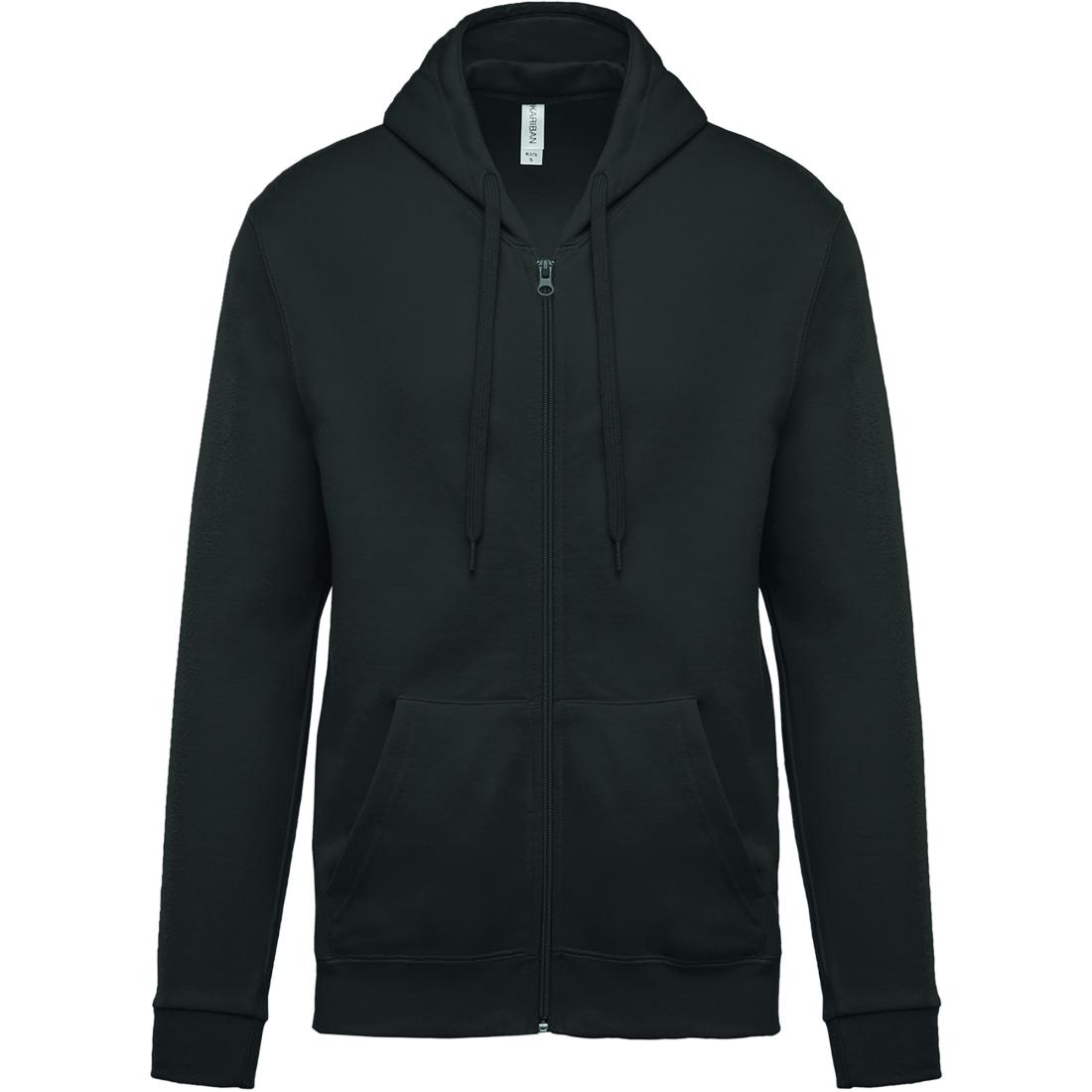 80% coton / 20% polyester. Coton peigné. Molleton gratté. Manches montées. Fermeture zippée nylon. Capuche doublée avec cordon de serrage ton sur ton. Poches Kangourou. Finition bord-côte bas de manches et de vêtement.