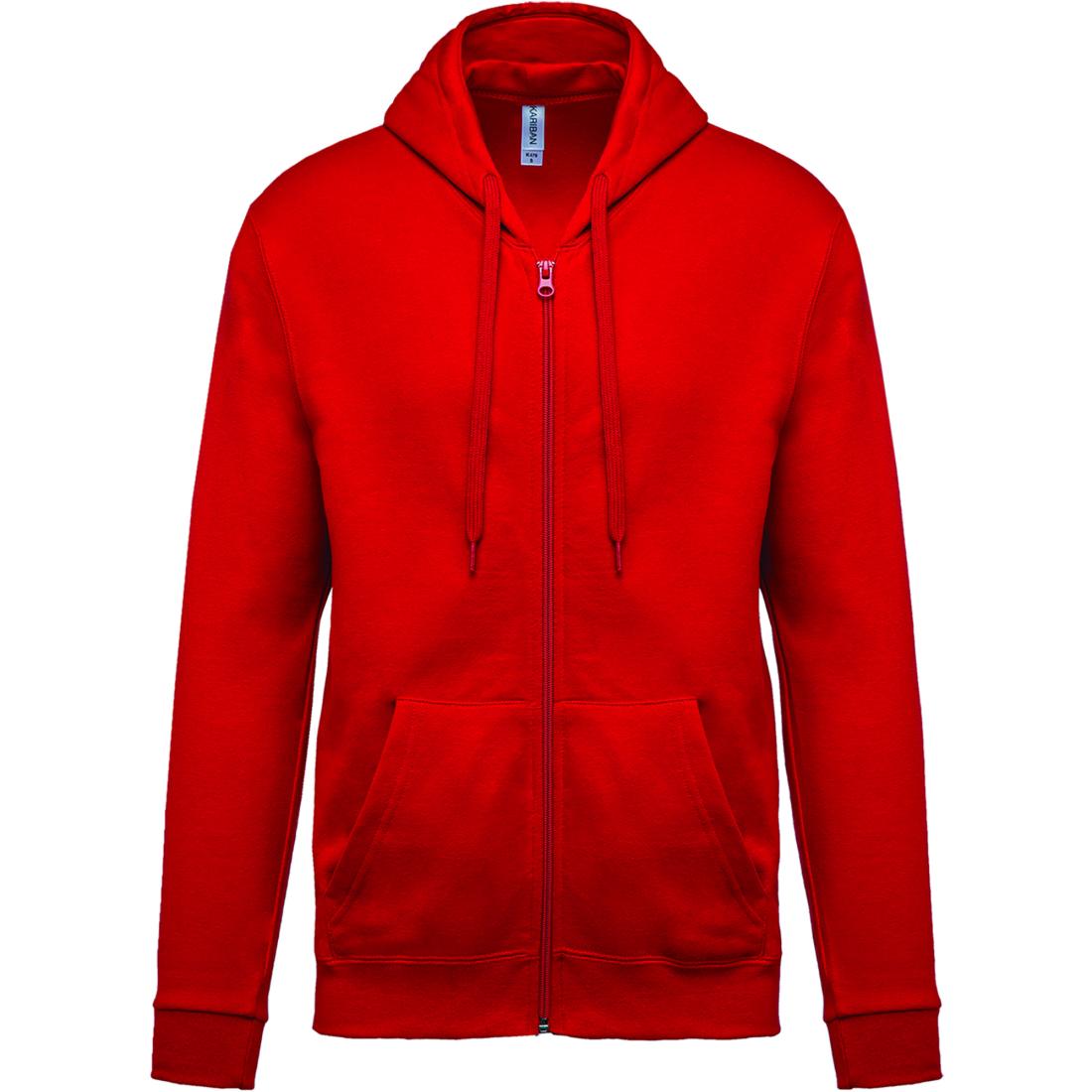 80% coton / 20% polyester. Coton peigné. Molleton gratté. Manches montées. Fermeture zippée nylon. Capuche doublée avec cordon de serrage ton sur ton. Poches Kangourou. Finition bord-côte bas de manches et de vêtement.